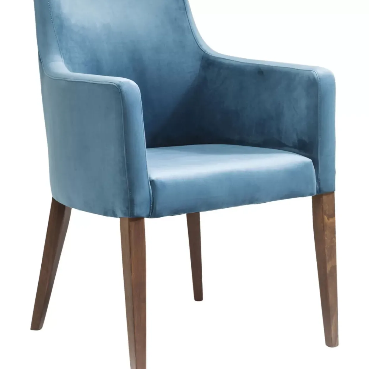 - Blauer,Komfortabler Polsterstuhl In Samt-Optik Mit Armlehnen Sowie Braun Lackierten Beinen Aus Massivem Buchenholz