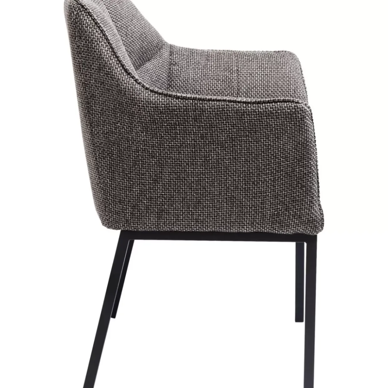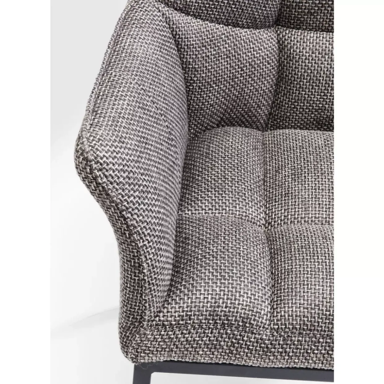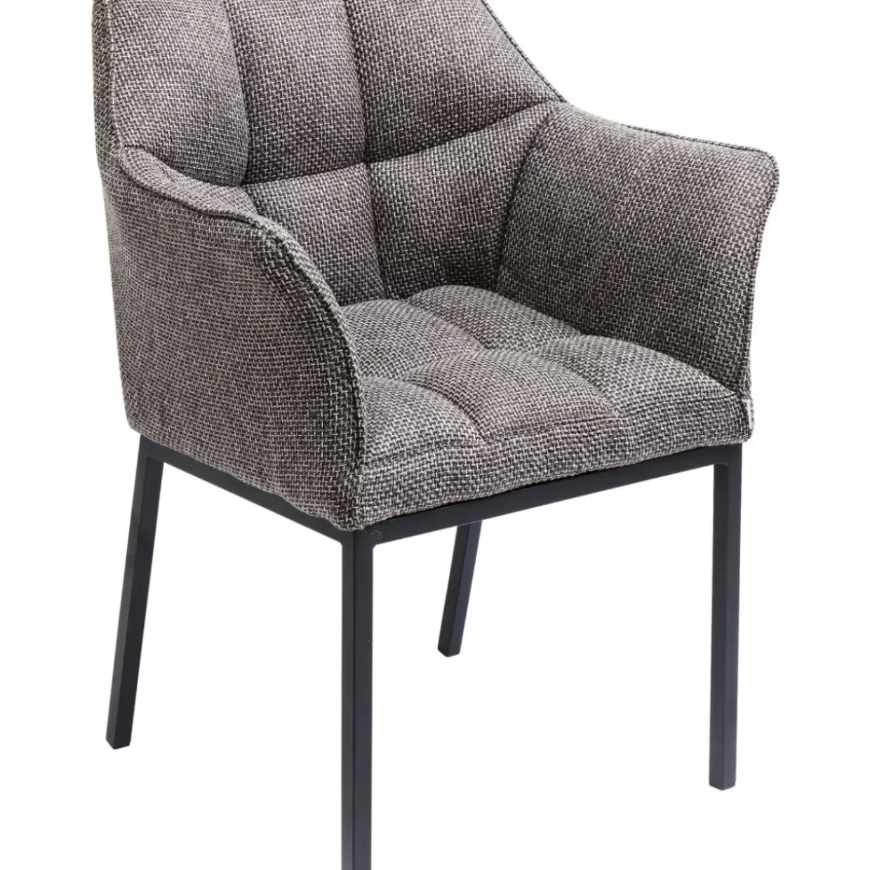 - Aufwandig Gearbeiteter Armlehnstuhl Mit Grau-Meliertem,Strukturiertem Stoff-Bezug,Ziernahten Und Schwarzen Stahlbeinen Im Modernen Look