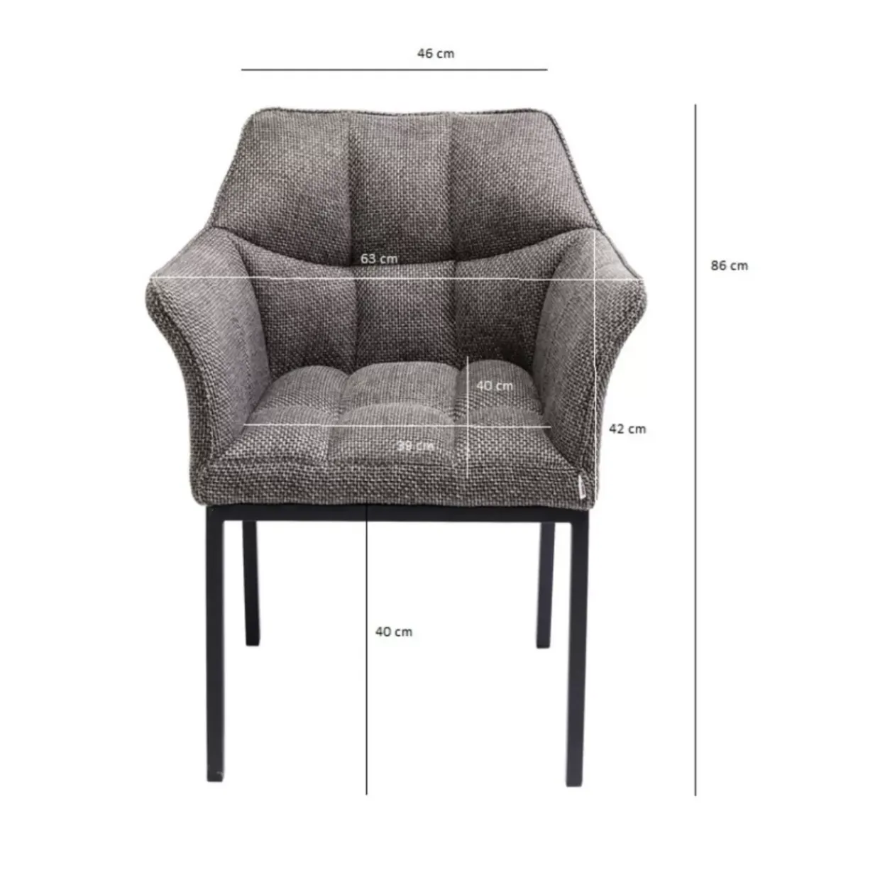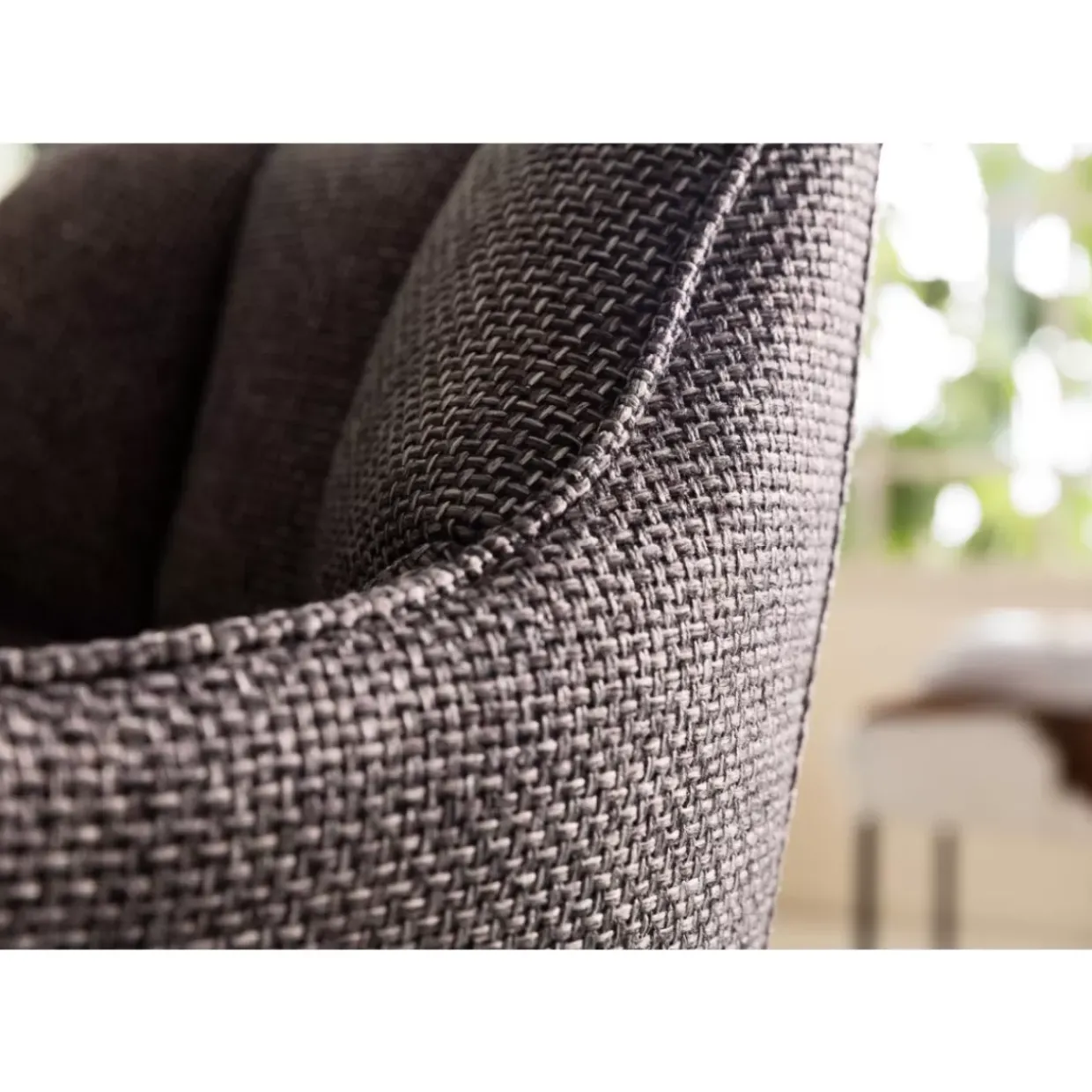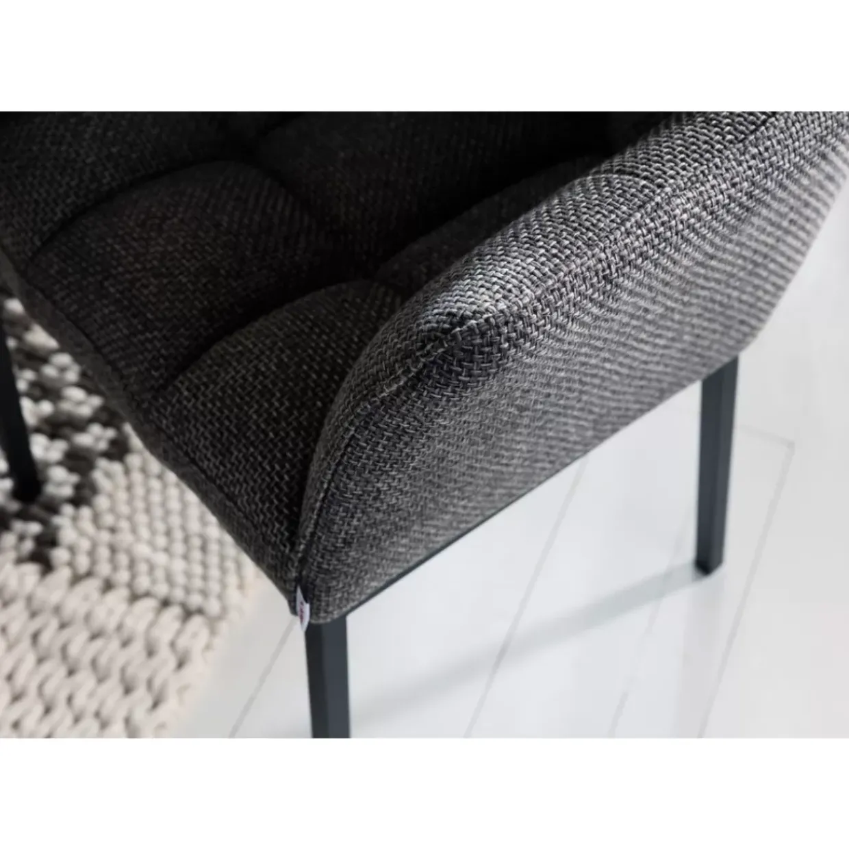 - Aufwandig Gearbeiteter Armlehnstuhl Mit Grau-Meliertem,Strukturiertem Stoff-Bezug,Ziernahten Und Schwarzen Stahlbeinen Im Modernen Look