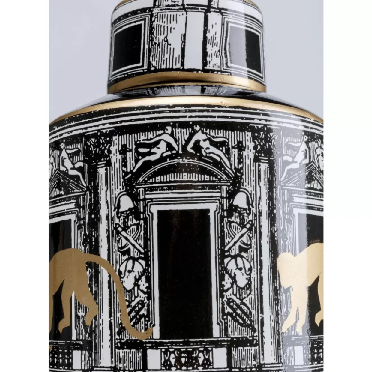 - Dekogefas Mit Deckel Aus Porzellan Und Uberraschungseffekt,Denn Goldige Primaten Bevolkern Die Dose Mit Antikem Motiv