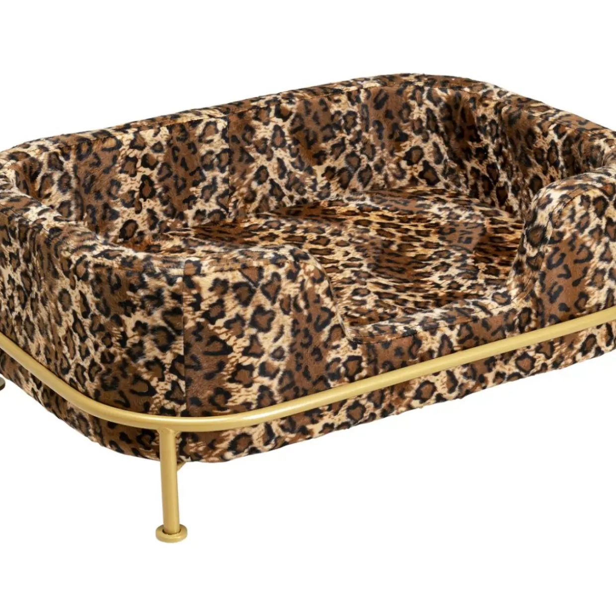 - Hunde-Und Katzenbett Mit Leo-Print Und Gestell Aus Metall In Gold,24.5 X 63 X 44 Zentimeter (H/B/T)