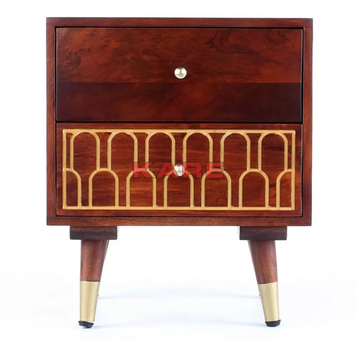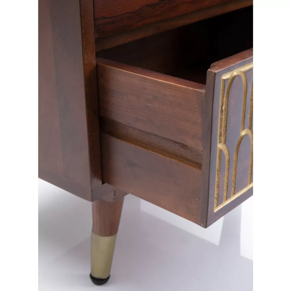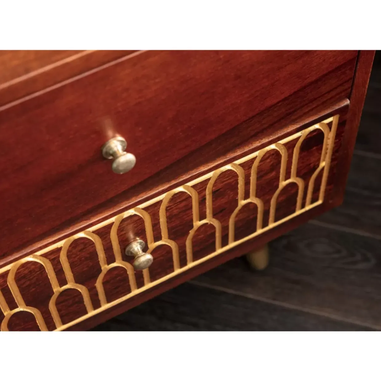 - Handgefertigte,Kleine Kommode Aus Mango-Massivholz Mit Eingravierten,Orientalischen Gold-Verzierungen Und Zwei Schuben