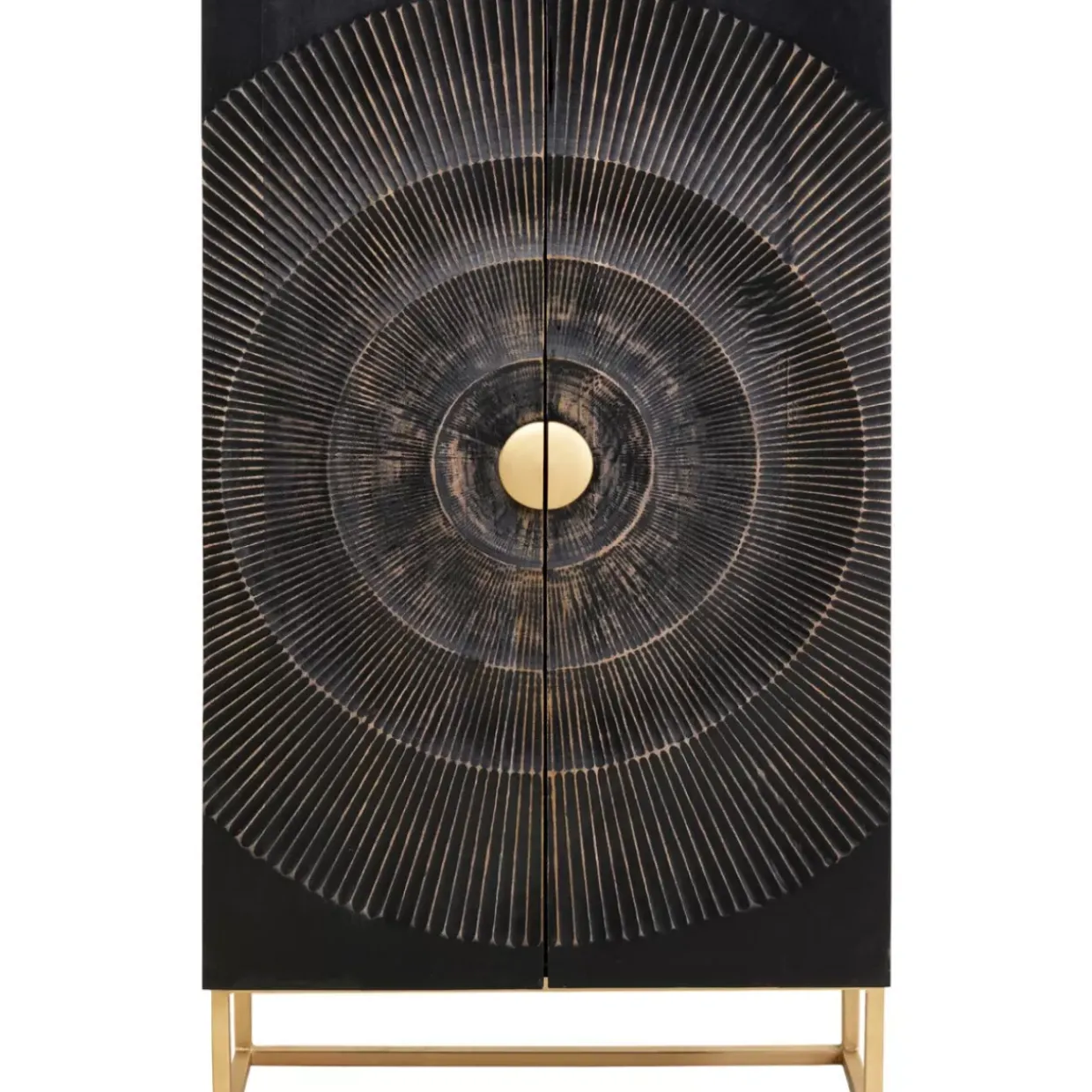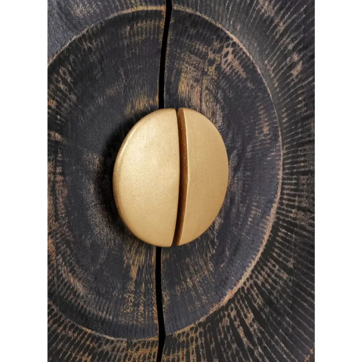 - Schmaler Schrank In Schwarz-Braun Aus Massivem Holz Mit Goldenem Gestell
