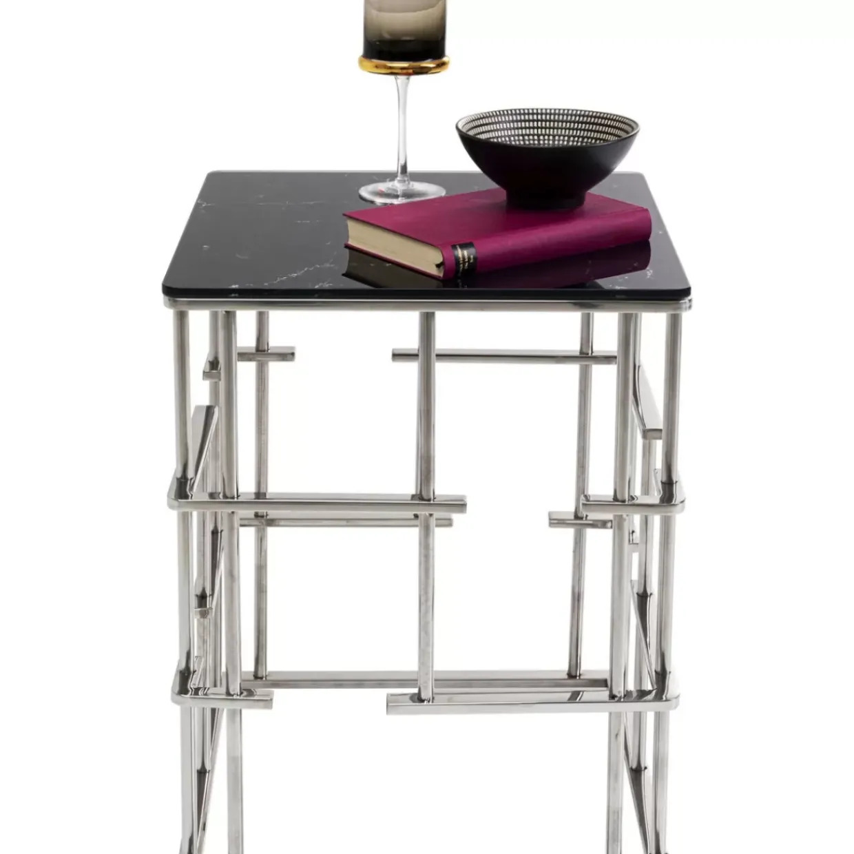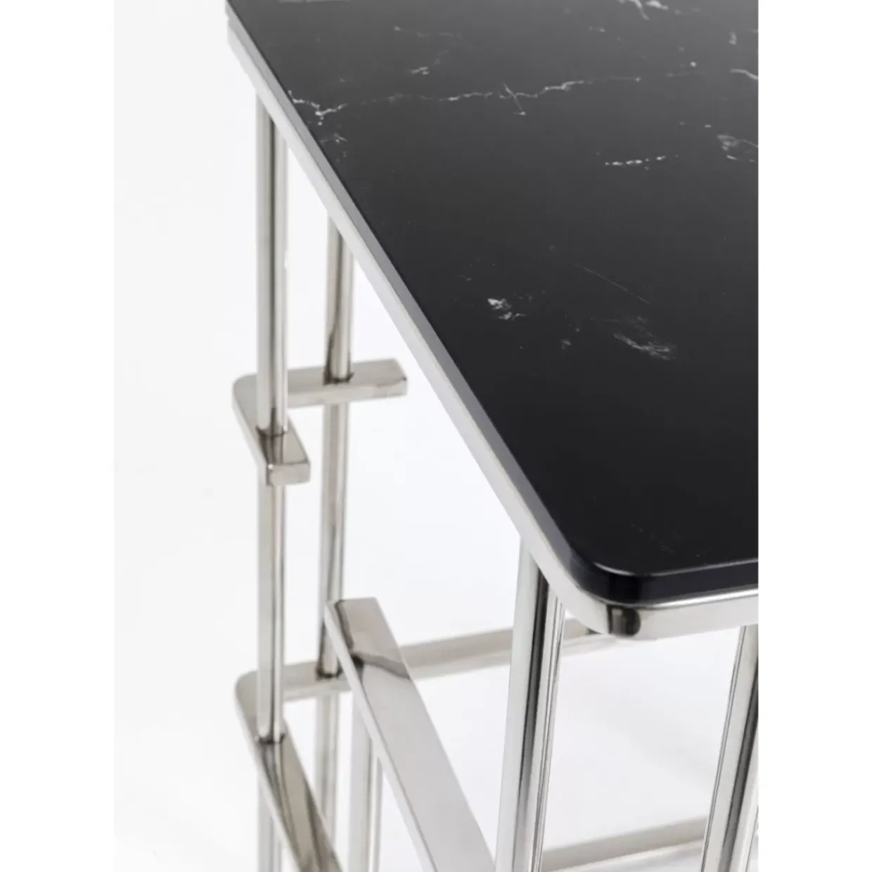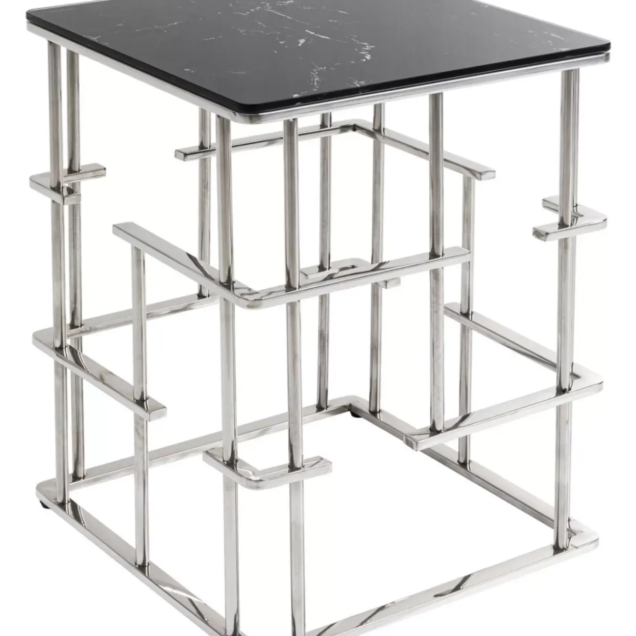 - Auffallender Beistelltisch Mit Quadratischer Tischplatte In Marmor Optik In Schwarz Und Silber