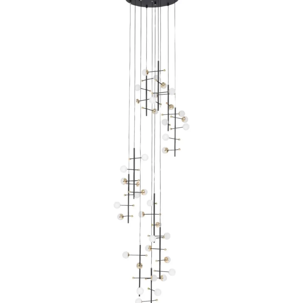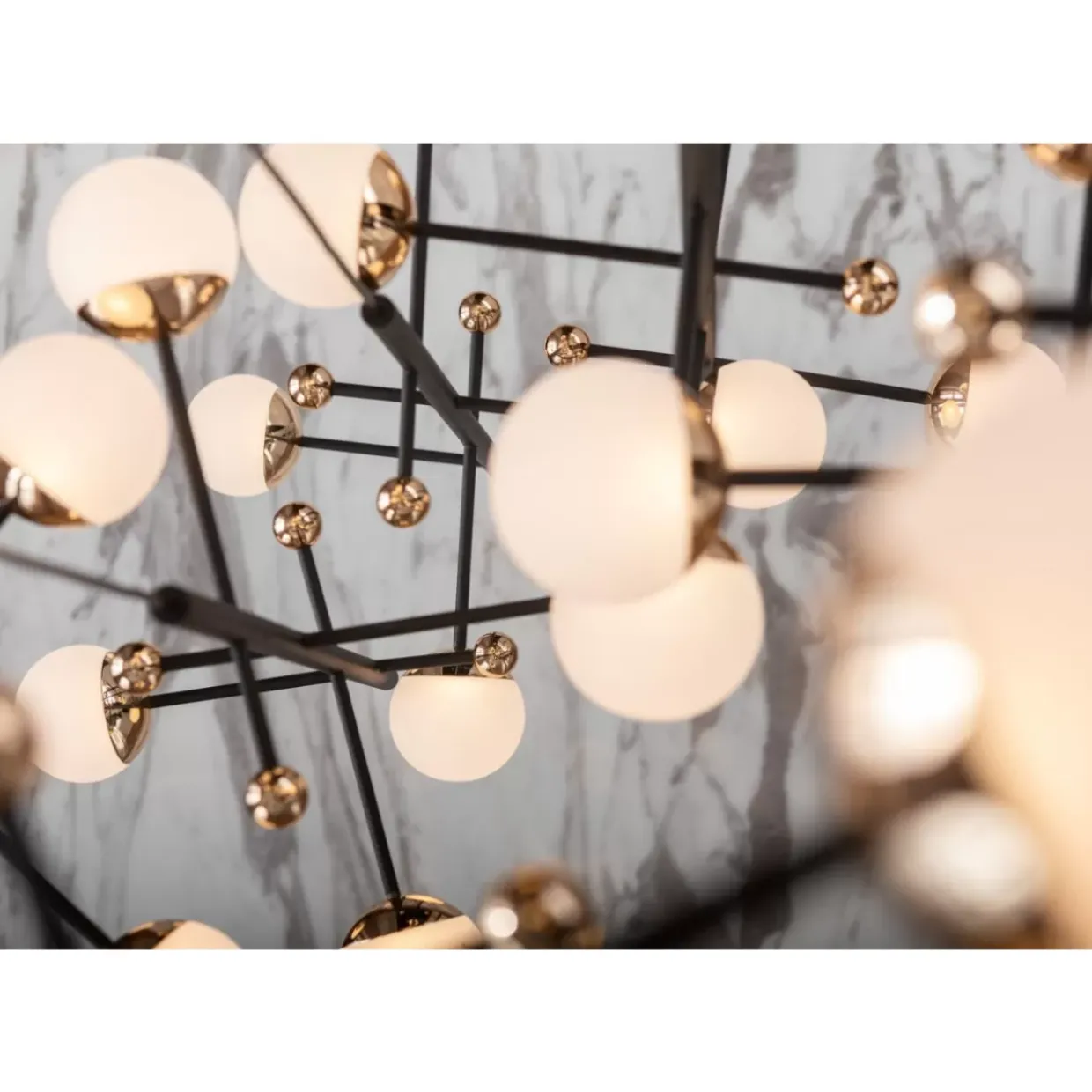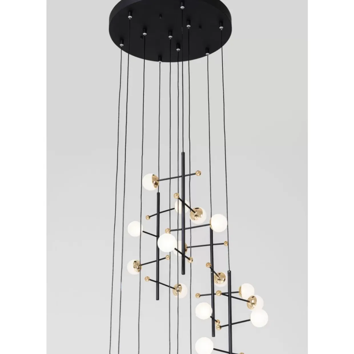 - Schwarze Designer-Leuchte Im Xl Format Mit Weisen Kugelleuchten,Die Indirektes Licht Spenden. Glanzvoll: Die Kleinen,Goldenen Dekor-Kugelchen