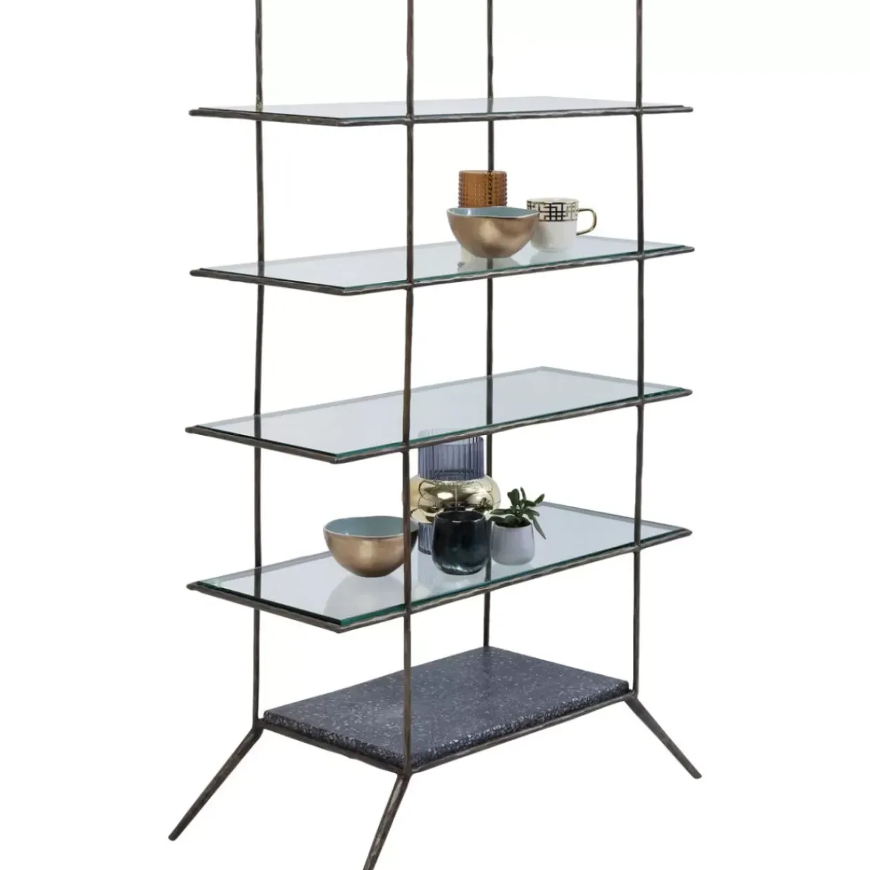 - Ein Handgefertigtes Regal Mit Funf Boden,Eyecatcher-Qualitaten,Retro-Touch Und Ungewohnlichem Material-Mix Aus Stahl,Glas Und Steinmaterial